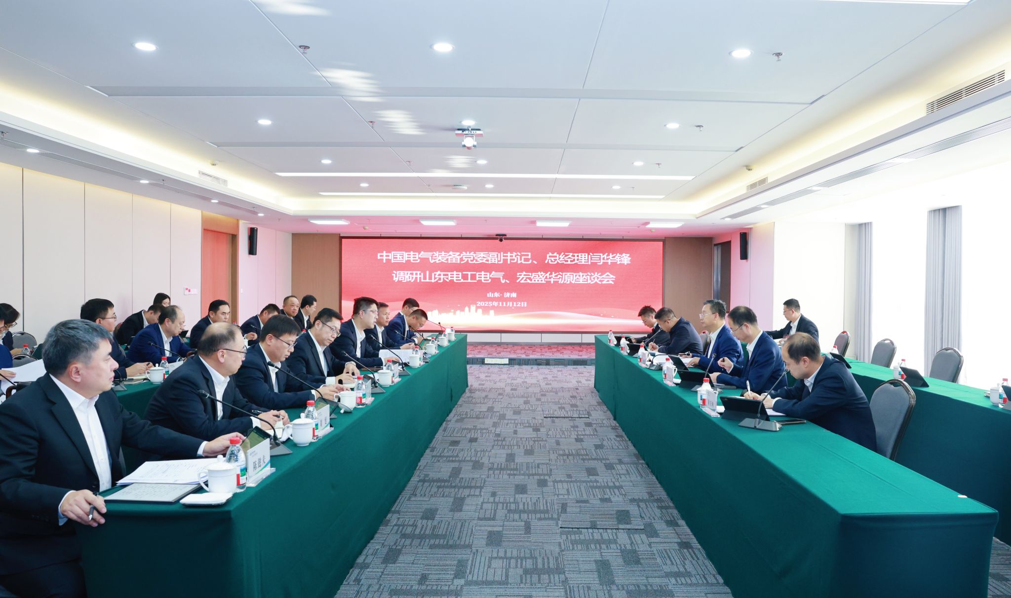 • 11月12日,中國電氣裝備黨委副書記、總經理閆華鋒在濟南與山東省委常委、濟南市委書記劉強,市委副書記、市長于海田會談,并見證簽署戰略合作框架協議。濟南市委常委、秘書長韓偉,副市長謝堃,市政府秘書長續明;集團公司黨委常委、副總經理朱安珂參加活動。閆華鋒對濟南市一直以來對中國電氣裝備的關心和支持表示感謝,介紹了集團公司的改革發展情況。他表示,濟南重大戰略交匯疊加,產業基礎堅實完備,希望雙方以深入學習宣傳貫徹黨的二十屆四中全會精神為契機,強化“十五五”規劃對接,繼續深化務實合作,充分發揮濟南市的資源